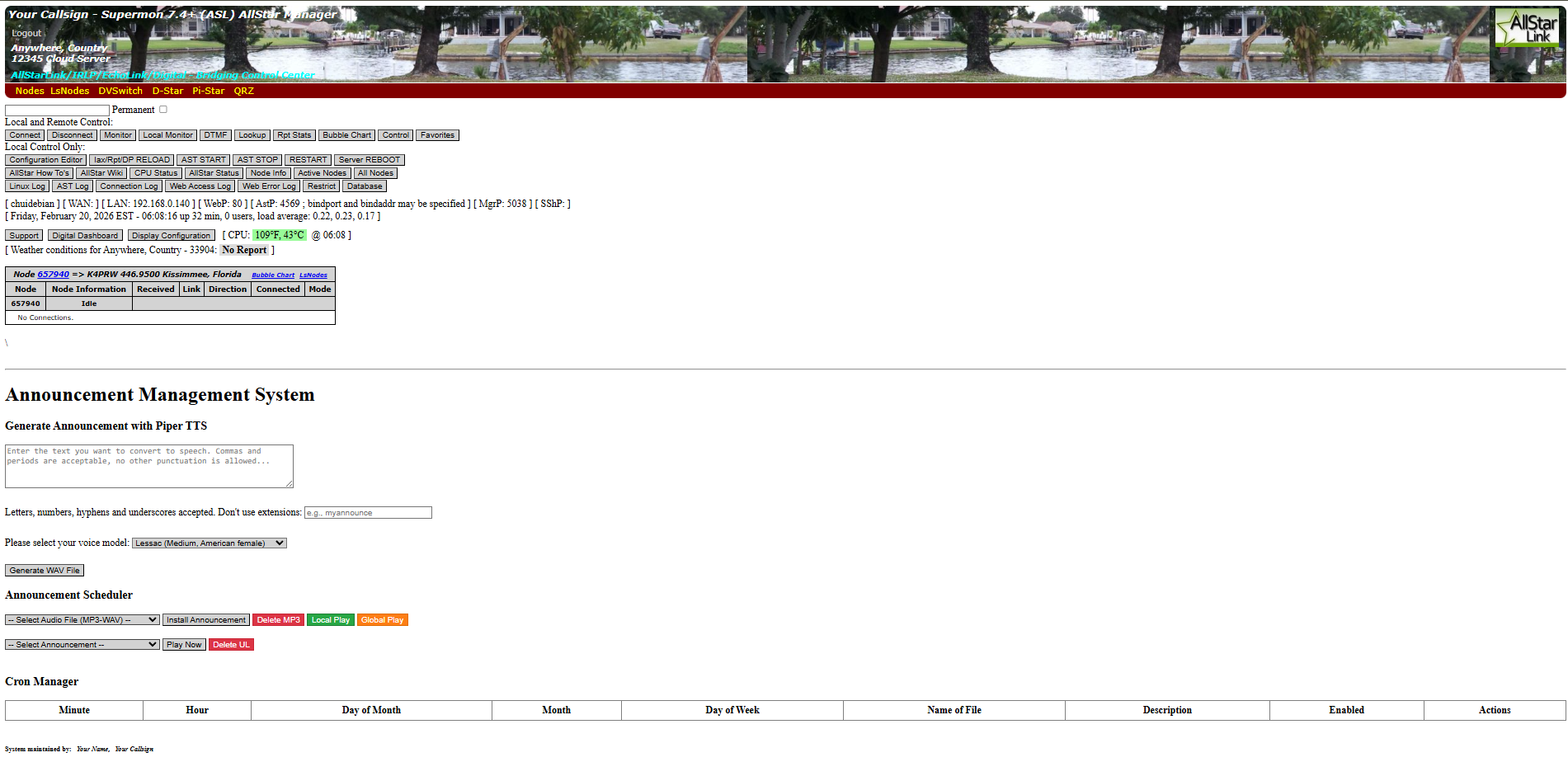 this would have been installed already with supermon. If you do not have supermon installed and decide to install it after you have installed announcement manager, you will need to rerun the announcement manager install script, to update the supermon file. don’t worry, you will not lose any announcements that you have already created.