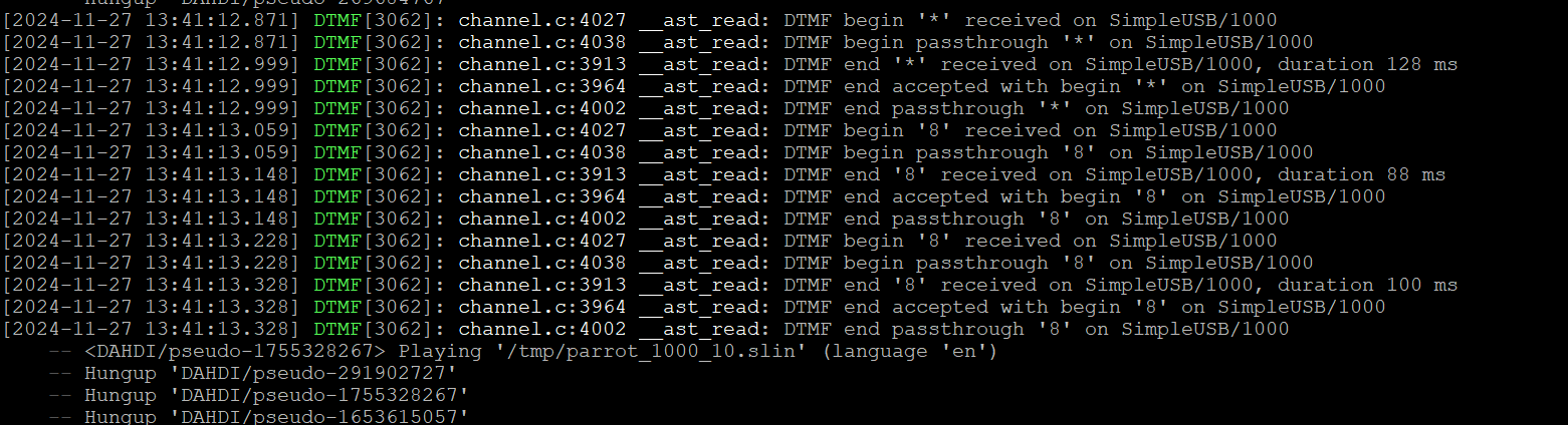 the only issue right now with node 1001 is it will not parrot. neither with the cli command or with dtmf command…