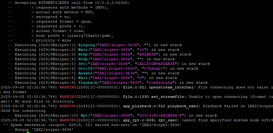 Once done (plus a reboot of course), I had a working system. I also found that allmon3 seemed basically “unconfigured”, but that was easy, just edit asterisk’s manager.conf and get it matching with allmon3’s configuration.