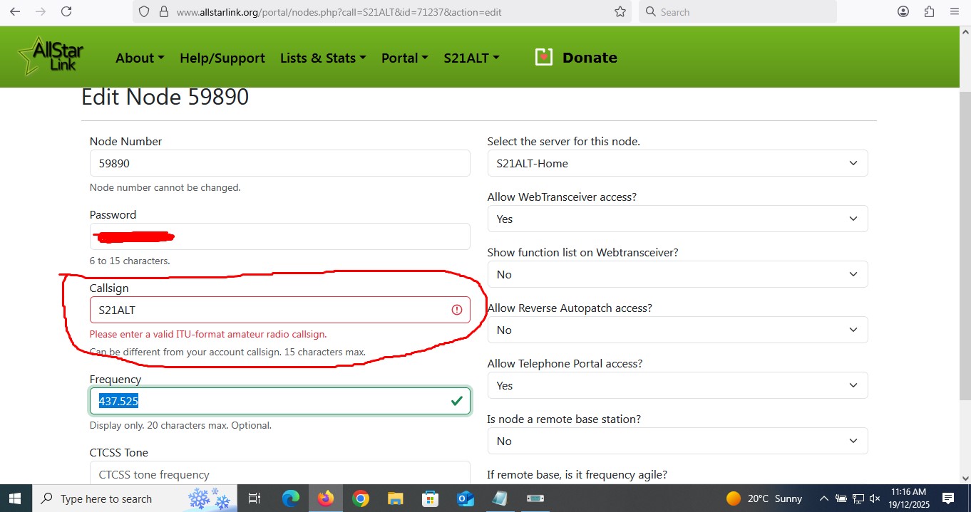 I am Md. Zaved Khan, my call sign is S21ALT, yesterday on 18/12/2025 while updating my node number 59890, I got the message, (Please enter a valid ITU-format amateur radio callsign). But our country's amateur radio operators use the call sign starting with S21 which is not mentioned in ITU website and the Civil Aviation Authority callsign starts with S2 which is mentioned in ITU website. I haven't had such a problem in the past but after updating your website I am facing this problem, the matter is very important. The amateur radio license authority of my country is "Bangladesh Telecommunication Regulatory Commission" (BTRC), providing s21 prefix callsign to more then 1000 amateur radio operators in Bangladesh . I have attached my amateur radio operator's license, I am specially requesting you to resolve the above issue. Such as adding s21 prefix in your database as amateur radio operator Callsign of Bangladesh . Thank You