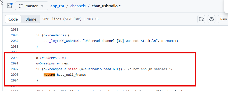 If I’m reading that right, if the USB receive buffer is shy even a single sample it will quietly return a null frame into Asterisk for that tick period.